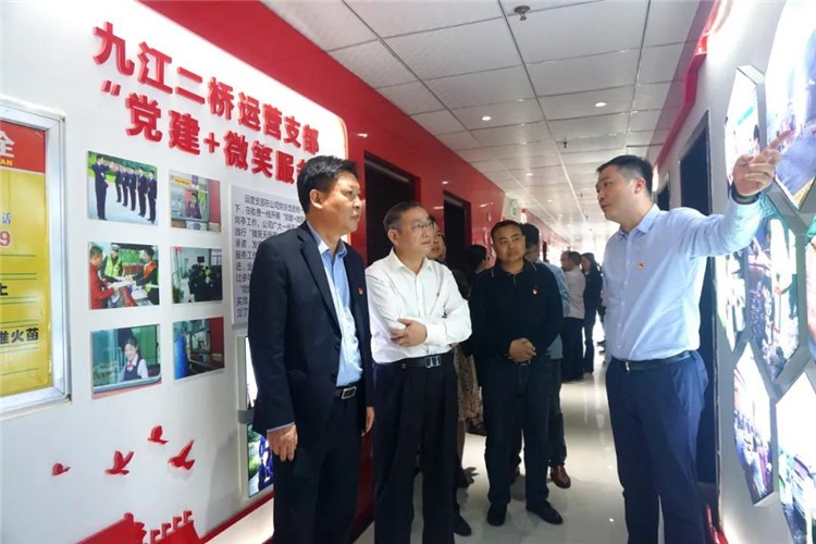 參觀組一行先后來到該公司黨建文化長廊、黨員活動室、班組活動室、退伍軍人之家等地,認真聽取了介紹講解,詳細了解九江二橋黨建工作陳地建設、文化建設、品牌培育、支部發(fā)展、黨建資料規(guī)范整理等多方面的有效做法和成功經(jīng)驗。學習人員邊看邊學,拿出手機拍照留影存作學習資料,并就相關(guān)問題和特色做法進行了咨詢和交流,從中借鑒工作方法,汲取工作經(jīng)驗。參觀結(jié)束后,還共同觀看了九江二橋微電影《回家》。